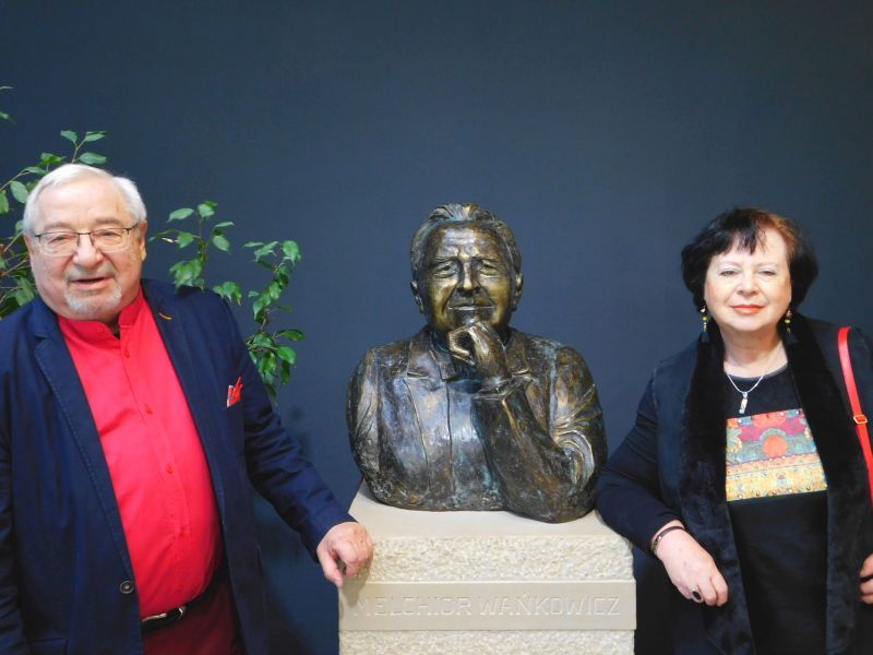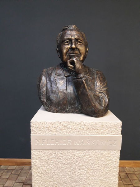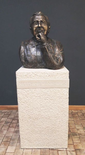 Popiersie Melchiora Wańkowicza zrealizowane dla Zespołu Szkół numer 1 w Błoniu. Wykonane w brązie na postumencie z piaskowca w 2019 roku.